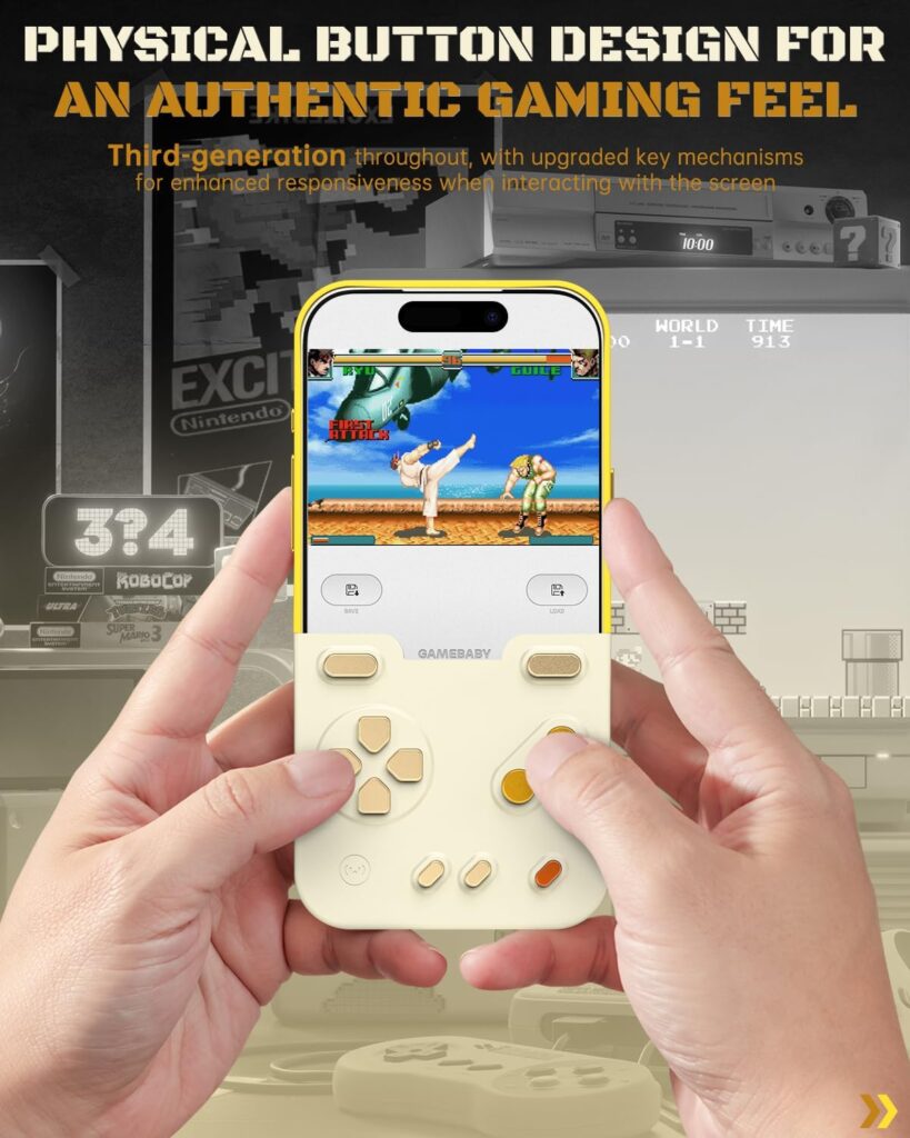 With a bold retro-inspired yellow design, premium materials, and a unique hardware-based gaming interface, this case delivers something rare in today’s accessory market: pure, distraction-free gaming without batteries, Bluetooth, or cables.