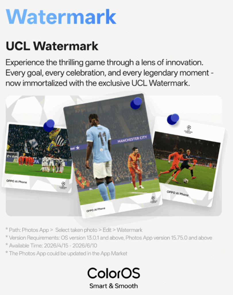 OPPO India continues to strengthen its software ecosystem with the ColorOS 16 April update, delivering a blend of sports-inspired creativity and advanced multimedia controls. This update introduces an exclusive UEFA Champions League (UCL) watermark feature alongside a refined video speed control system, enhancing both personal expression and content interaction.