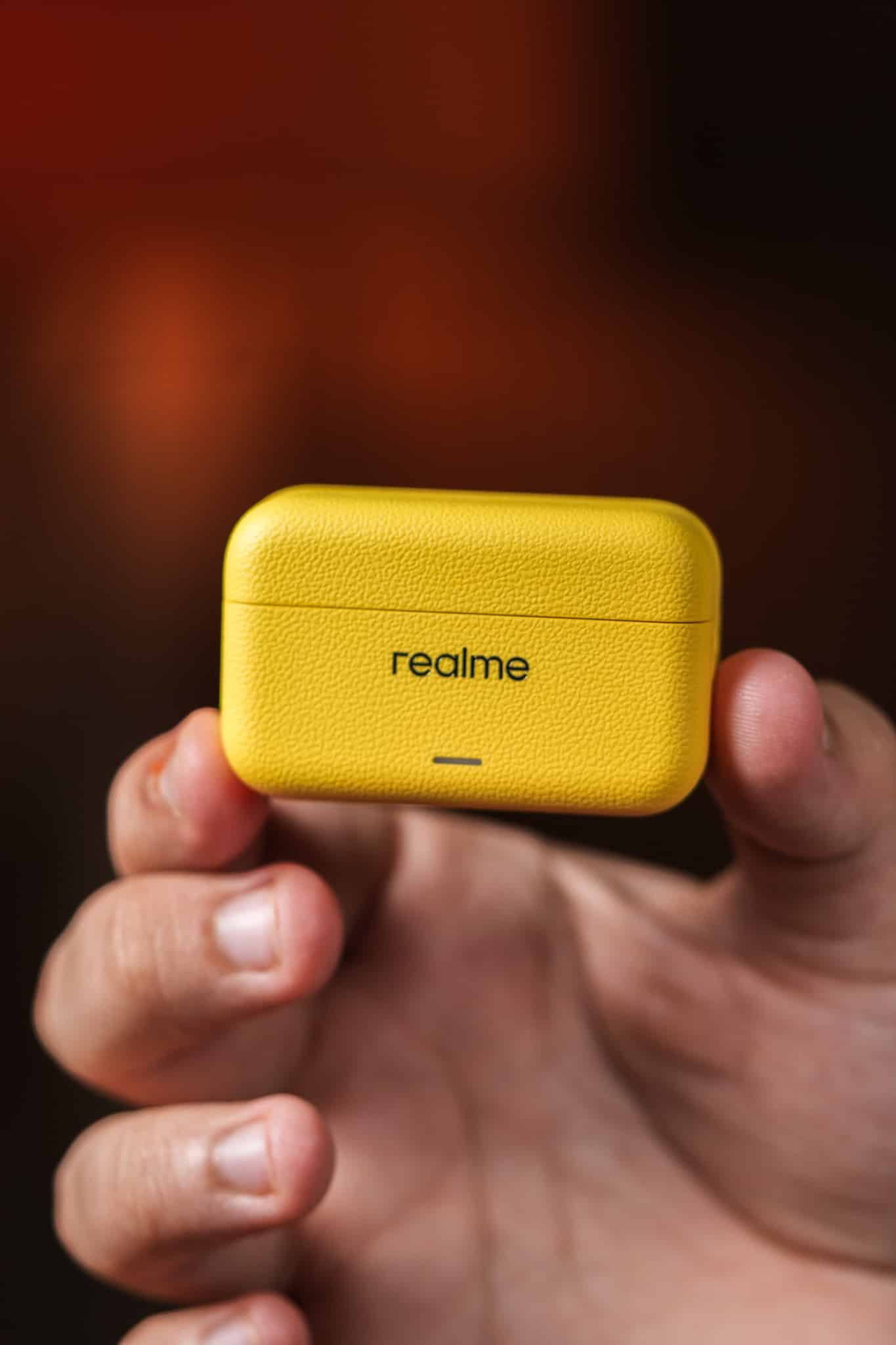 Right out of the box, the Realme Buds T500 Pro makes a strong first impression. The charging case features a compact, candy-box style design that feels both modern and highly portable. The leather-like texture on the case adds a premium touch, something rarely seen in this price segment.